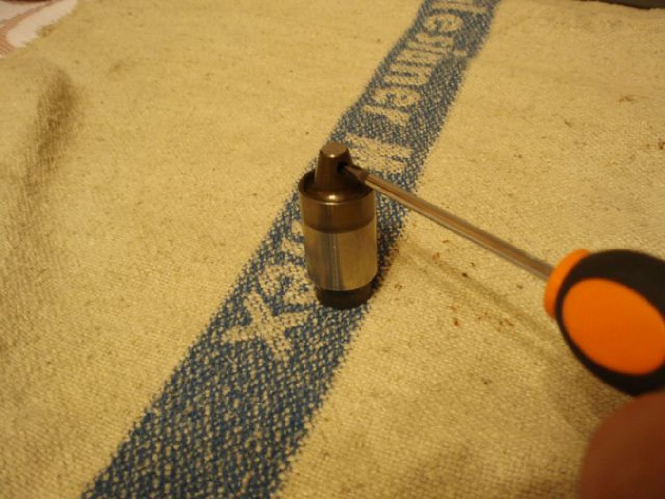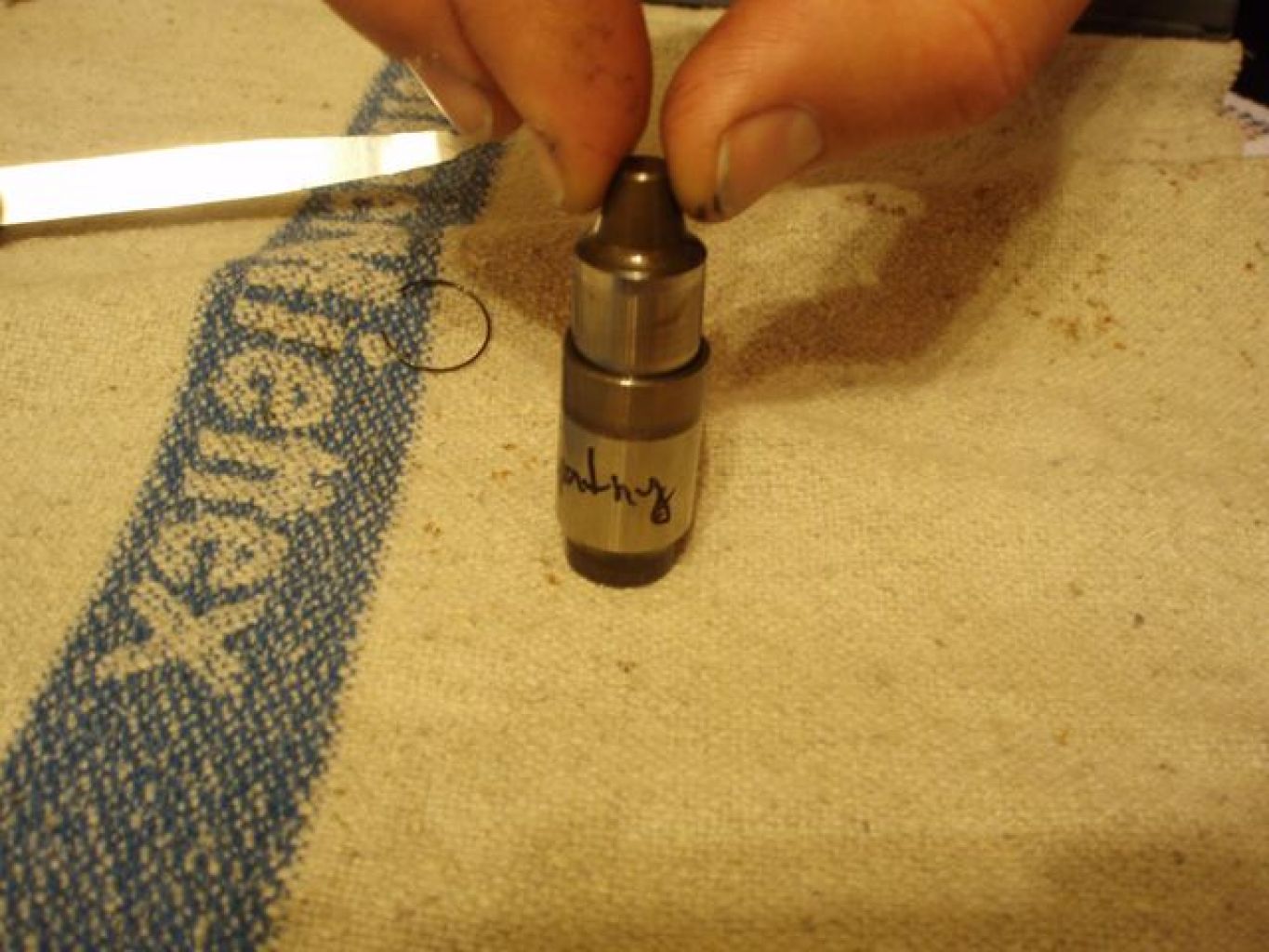 První a dá se říct, že největší problém byl v tom, jak LMA vůbec rozebrat, respektive jakým nástrojem vyndat vnitřní pérovou závlačku. Nebudu tu obšírně popisovat všechny neúspěšné pokusy a přejdu raději rovnou k věci. Na brusce jsem si upravil spárovou měrku na ventily 0.45mm (viz obr.).