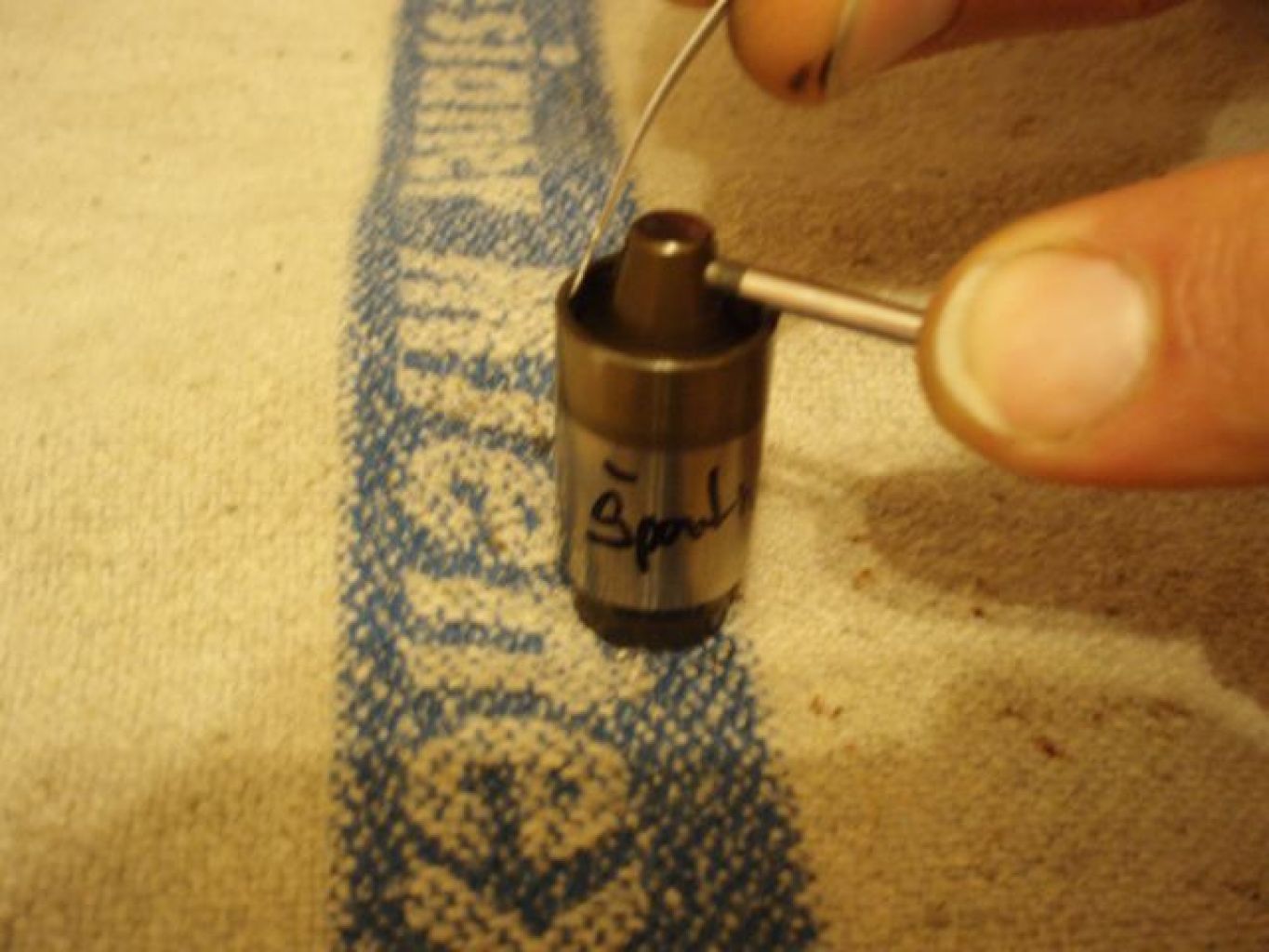 Následovalo zkoumaní a napružení slabší z pružinek. Pružina ze špatného LMA má výšku cca 8,1mm, tak jsem ji napružil (natáhl) na 10mm.Víc je zbytečné, protože se pak stejně sama upraví na 10mm.