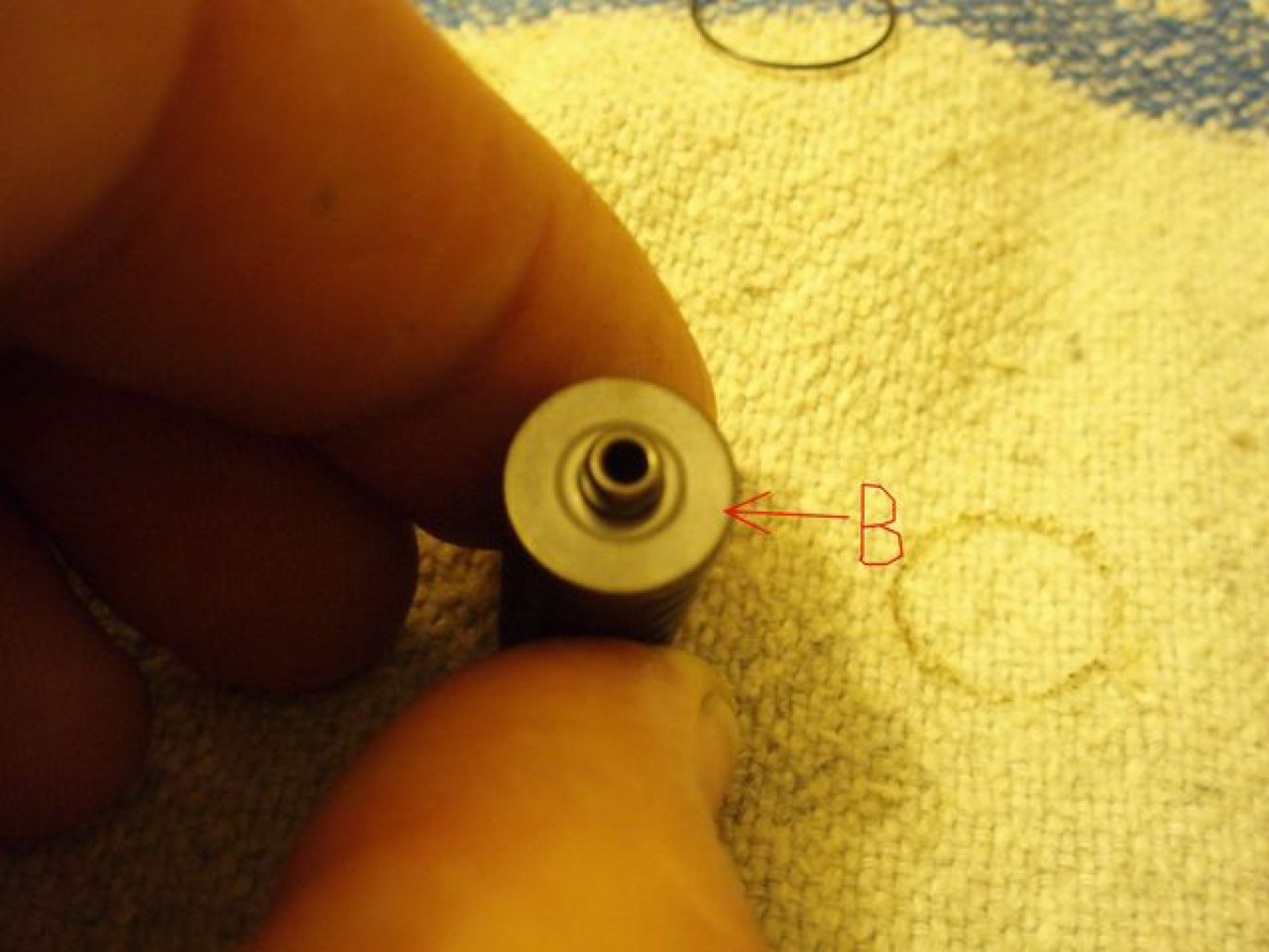 Po rozebraní jsem zjistil, že je LMA zevnitř čisté, takže nečistota nemá s jeho nefunkčnosti nic společného. Nejvíc mě zarazilo, že v suchem stavu (odmaštěné) funguje normálně. Po opětovném namazání olejem je ovšem LMA opět nefunkční. Po bližším zkoumaní jsem přišel na to, že olej slepuje dosedací plochu A v pístku a dosedací plochu B na dělicí tlačné podložce mezi pružinami.