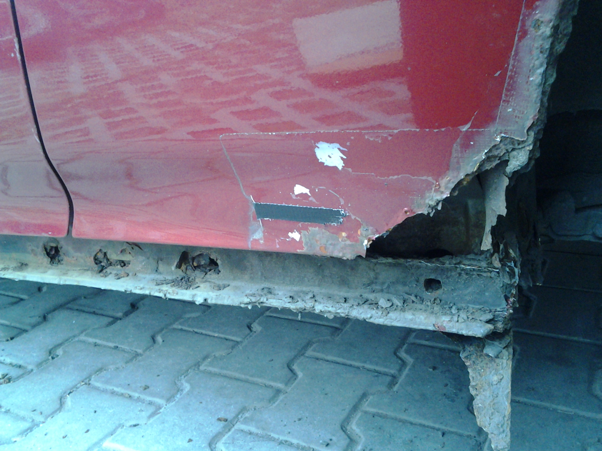 O víkendu proběhla první část opravy lemů, ze které se vyklubala téměř renovace prahů HaHaaa Další víkend pokračování toho smutnýho příběhu, jak to nazval Luboshuv brácha pořádnej výtlem