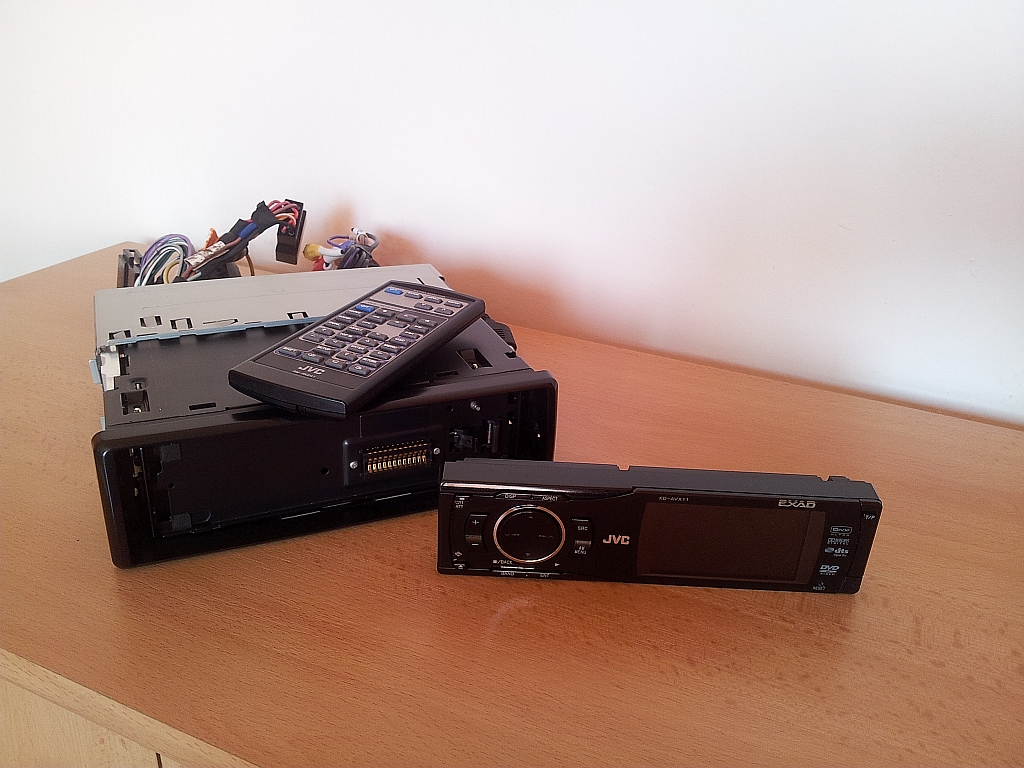 Kdyby měl někdo zájem, zpříjemnit si cestování i sledováním filmů nebo videoklipů, nejen poslechem uřvaného výfuku Velmi šťastný , tak nabízím dvd autorádio od JVC, model KD-AVX11, ve své době jedno z top rádií, které nabízí hodně možností nastavení zvuku, výstupy na sw,repro, další monitor případně,vstupy, včetně dálkového ovladače. V hezkém a funkčním stavu. Čte jak origo tak i palené dvd, podporuje mnoho formátů, elektricky výklopný panel - polohovatelný a spousta jiného. Rádio už nevyužiji, služebáka vracím a do EP2ky ho rvát nebudu, je tam origo. Podrobné info je kdekoliv na netu. Při zájmu sz.