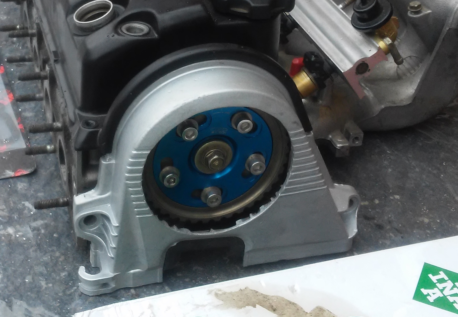 -Stavitelné vačkové kolo BLOX D-série (D14, D15, D16). Kolo jen nasazené a sundané z vačky, jinak nepoužité + vyřezaný kryt rozvodů - 1200 Kč