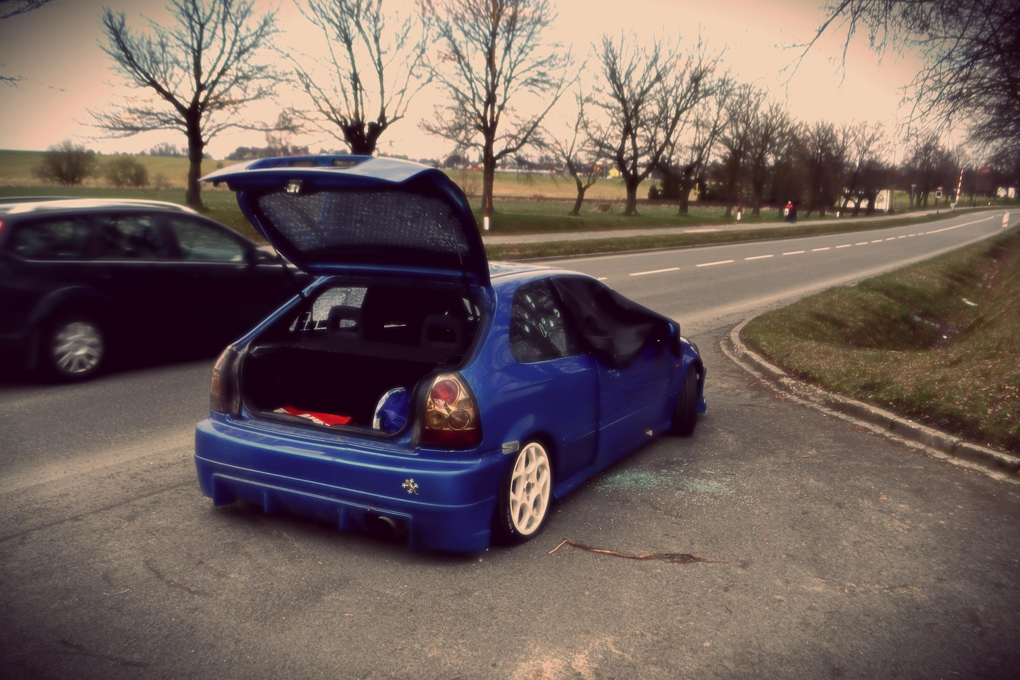 Nějaké individuum závidělo mému kamarádovi a tak jednoho krásného dne, když mu odešla spojka půl kilometru od baráku, nějaké bezmozkové prasátko sebralo klíč na kola a rozbilo všechna okna a probodalo všechny pneu. Ble Mimo jiné také sebralo rádio a zesilovač Sony X-PLODE a Subwoofer Pioneer. naštvanej Ten kamarád nechal Hondu odstavenou na tom místě ještě další měsíc, jen zalepil díry ve sklech. Já jsem na ni narazil náhodou na FCB v nějaké zprávě z místního bulváru a tak jsem neváhal a okamžitě mu volal. Dohodli jsme se na ceně a druhý den jsem si ji odvezl na laně. H+ chatek: Jsi už 125. co si myslí, že šlo o střelbu! Velmi šťastný MaxxEK3: Ano jsou to předface světla na poface autě, teď jsou na mojí Hondě, takže už je vše v pořádku. kouř conygas: pořádnej výtlem mark.long: Nevím přesně jak dlouho to bylo, ale kdo šel kolem a kopl si, tak má IQ houpacího koně! Velmi šťastný To se přeci nedělá... Honda