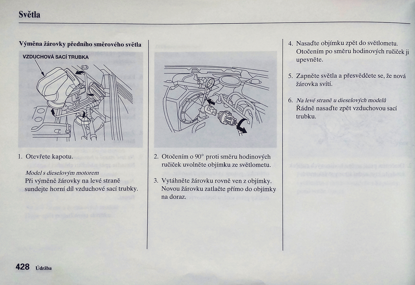 neni, jestli benzin nebo diesel, zarovky nebo vybojky az to budes mit trosku natrenovane tak oba svetla zvladnes za 10 minut , uz ot tu je nekde popsane