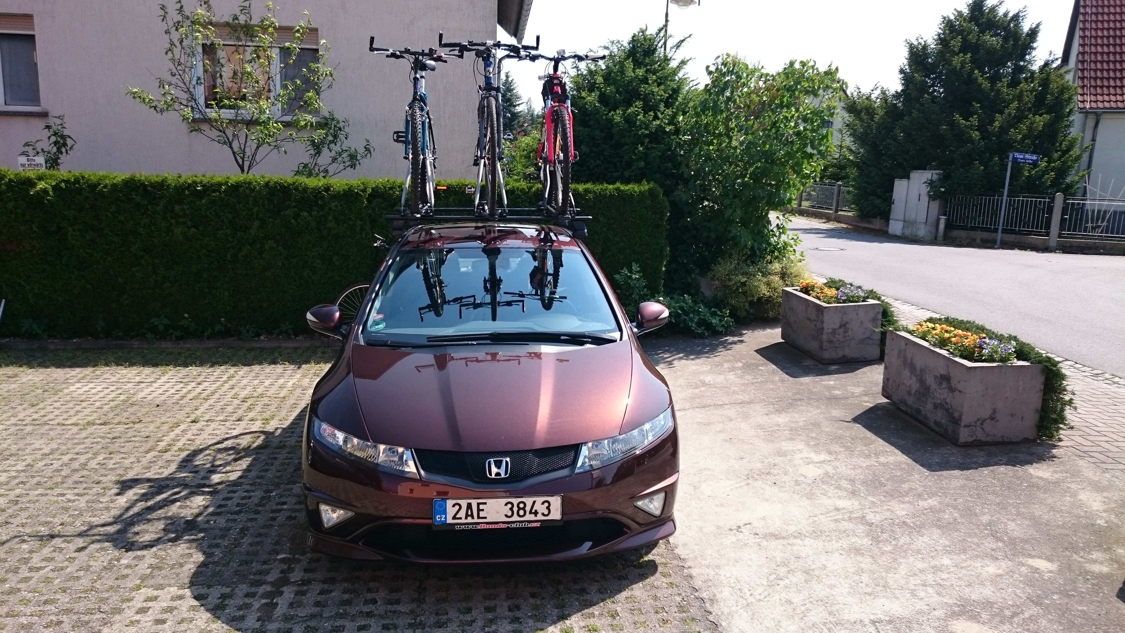 Mám originální nosič Honda, což je přebalený Thule s aero tyčema či jak se to jmenuje. Montuju na to 4x Free Ride a tedy 4 kola. Dvě dospělé, dvě dětské. No problém kouř