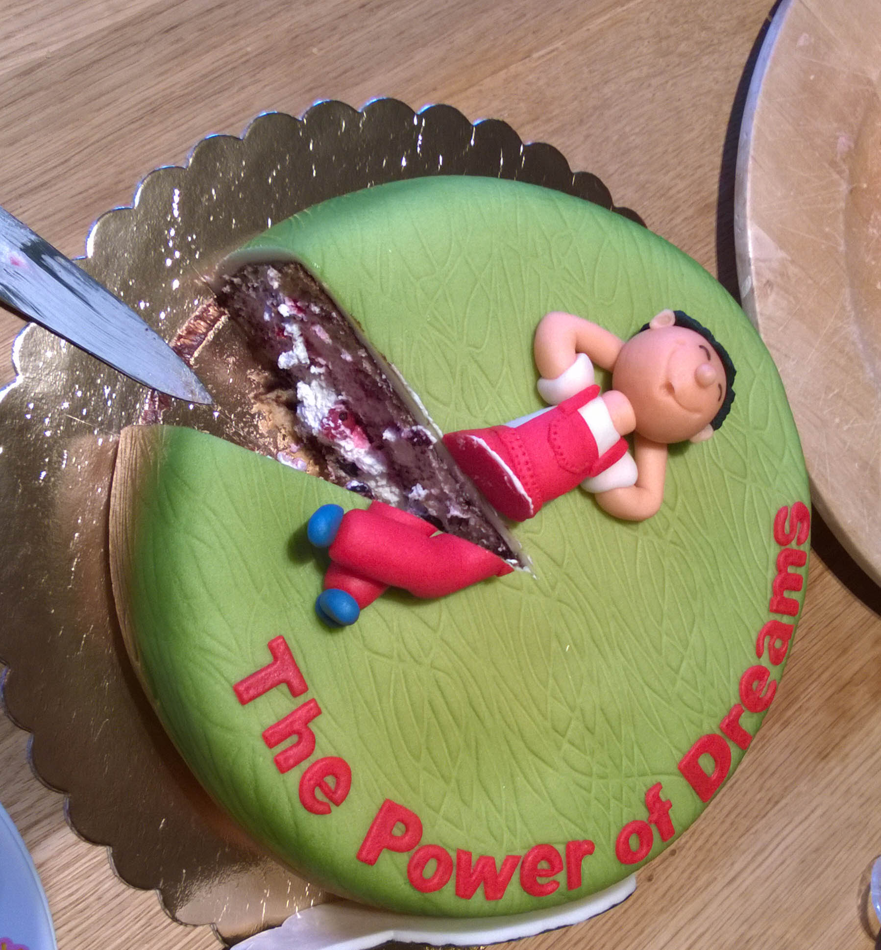tak já přidám jedno dílko k 20cetinám...kdo ví ten ví o co tu běžííí Úsměv vše z vrchu je marcipán,uvnitř piškot s marmeládou a krémem je to dobrý