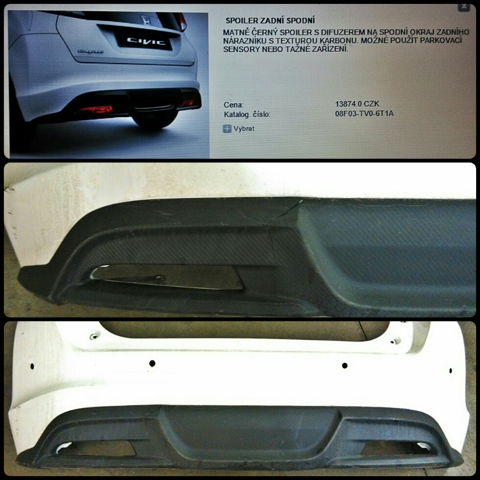 Prodám na Hondu Civic 9G model 2012 na předface model zadní spodní spoiler s difuzorem s texturou karbonu.