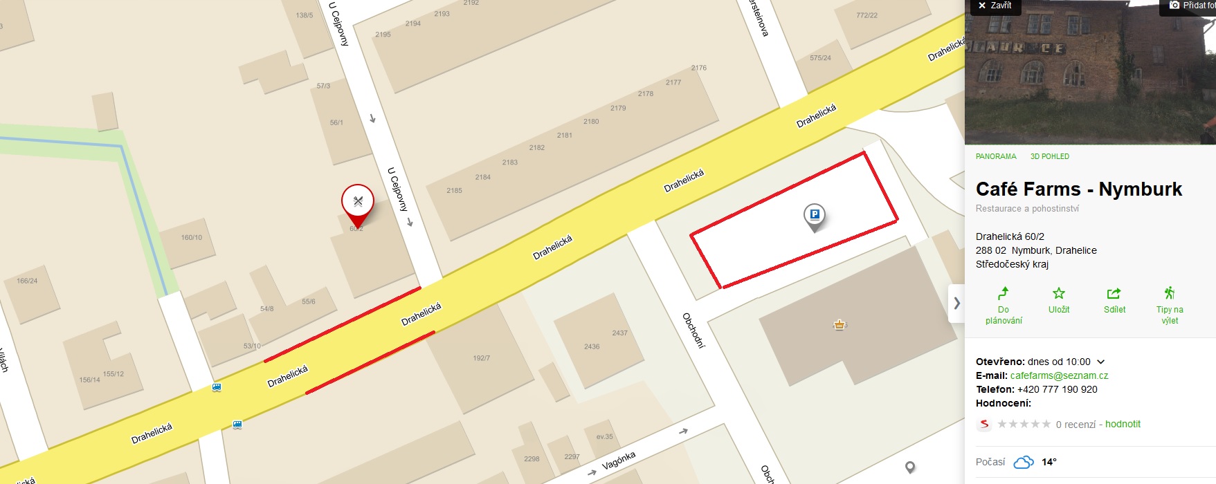 Mapa: Cafe Farm - Nymburk / Parkoviště Poděbrady - místo v jednání