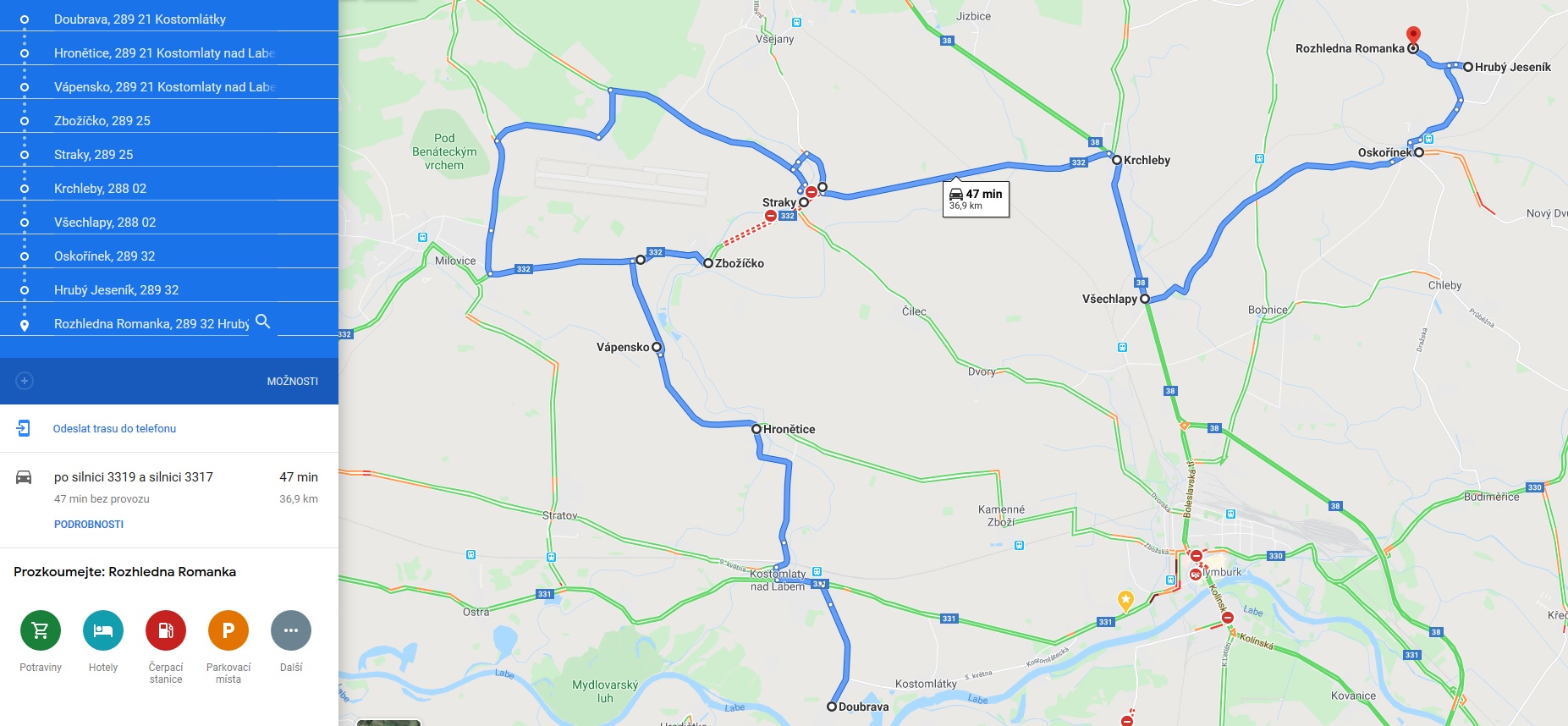 - 14h projíždka: Doubrava, Hronětice, Vápensko, Zbožíčko, Straky, Krchleby, Všechlapy, Oskořínek, Hrubý Jeseník, rozhledna