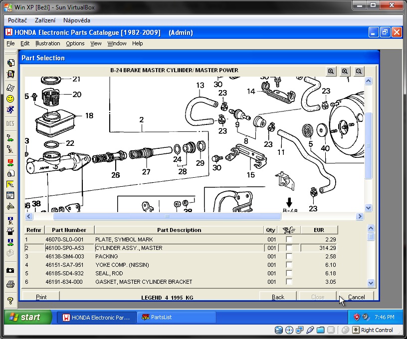 já používám EPC verze 13h a tak vychází po dotazu na HONDA Praha 4 - Chodov kurz asi Kč 38,- vůči € 1,-. A pan Plašil v HONDě Chodov neměl vůbec žádný problém po zaslání e-mailu s cca 10ti položkami Part Number dle EPC > už vůbec se neptal, kde jsem k tomu přišel. Velmi šťastný