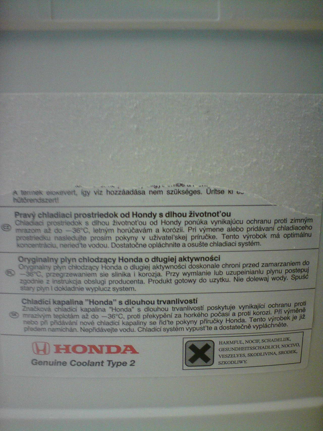 tudy do ATR nakonec šla nemrznoucí směs origo od Hondy. Nafotil jsem štítek. Prodává se 5 litrovej kanystřík. Je modrá a na 5 let.