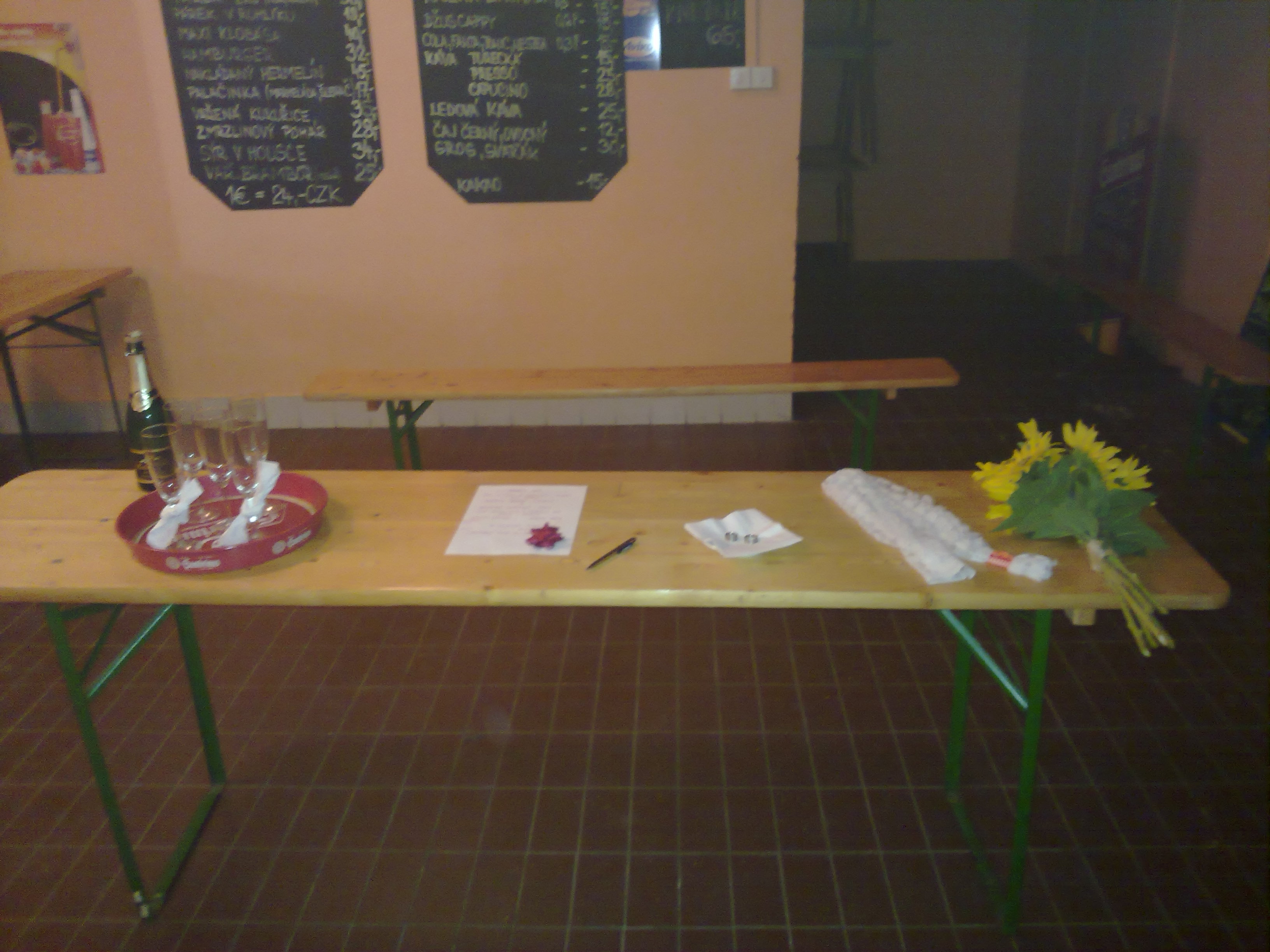 tak tahle to ma vypadat pifko Je to tam. proste pocasi dobry. hospodskej dobrej a dobrej kolektiv.. proste jedinna chybicka bylo to kratkyyyy Bueee (casem pridam fota a videjko ze svatby Lucy Lucy Lucy )