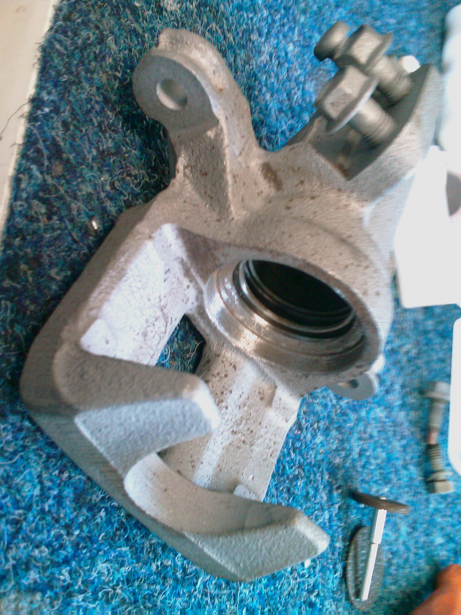 tak takhle bych to teda v tomhle stavu opískovávat nenechal..já vše rozebral a to co sem potřeboval mi tam zakryli a pořádně opískovali, takže třeba jako ty máš ty dosedací plochy, tak těch se mi ani nedotkli páč to zakryli a dávali si pozor...ty držáky třmenů mi taky zakryli a nestříkali mi ani tu díru na vodící čep, koukám na to tvé a ty tam máš tu červenou..to samý opískované ložisko, pokud ho měníš neni co řešit, pokud ne tak dlouho nevydrží.