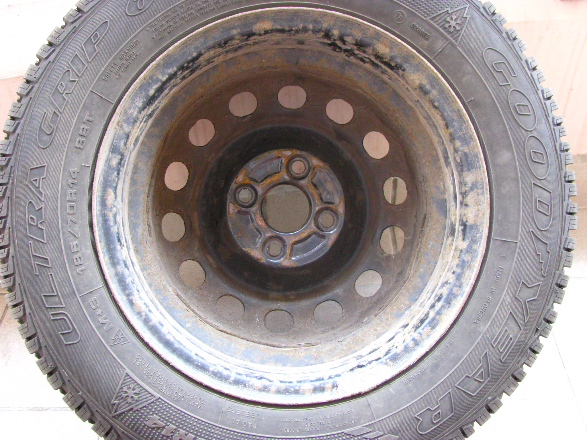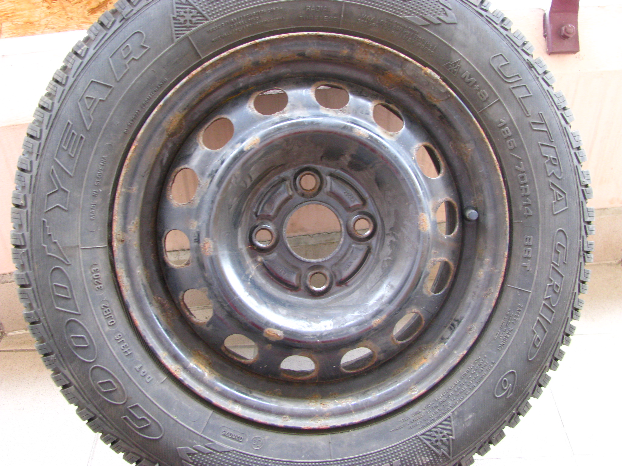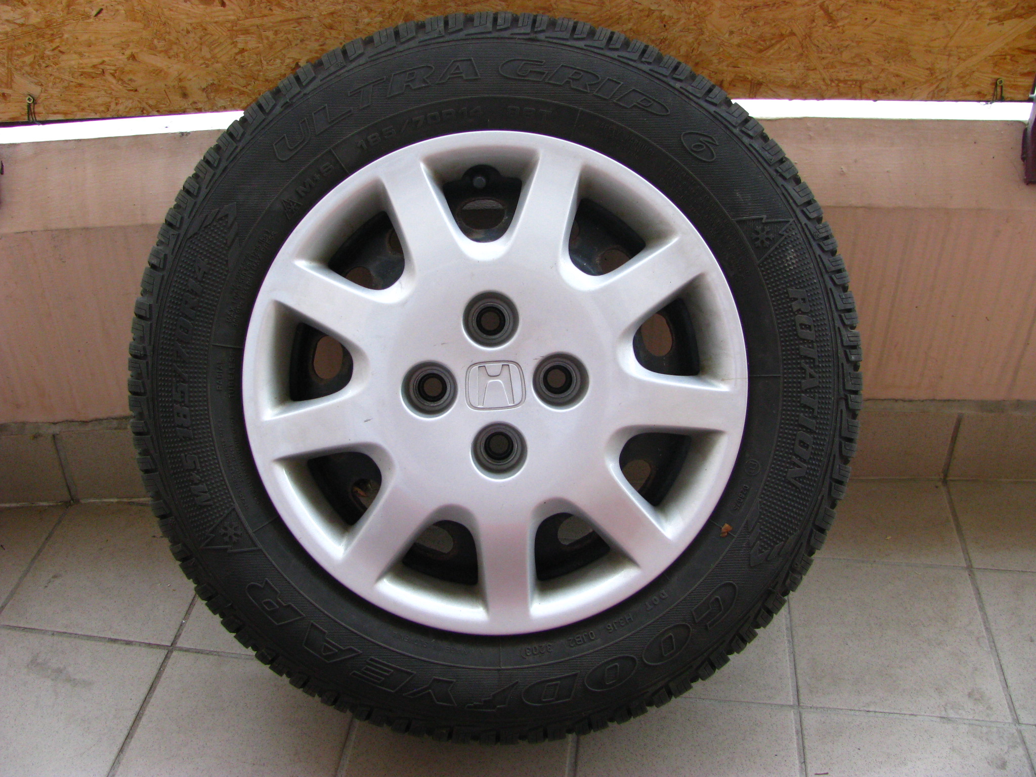 Prodám sadu zimních pneu Goodyear Ultra Grip 6 185/70 R14 88T, na plechách 14x5,5J, ET45, 4x100, stř. díra 56mm (Civic 7g). Koupil jsem je s autem a ikdyž jsou starší, tak jsou minimálně jeté. Vzorek 7-8mm.