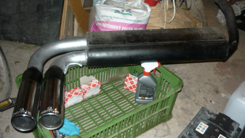 a mám tu napprodej za 700kč výfuk remus s dvěma koncovkama, jen tak očištěnej, fouklej v barvě .. neschnilej..chrom na koncovkách ok ..