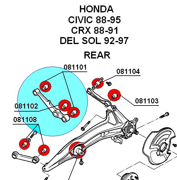 P: Silentbloky zadního příčného ramene Civic, CRX, Rover