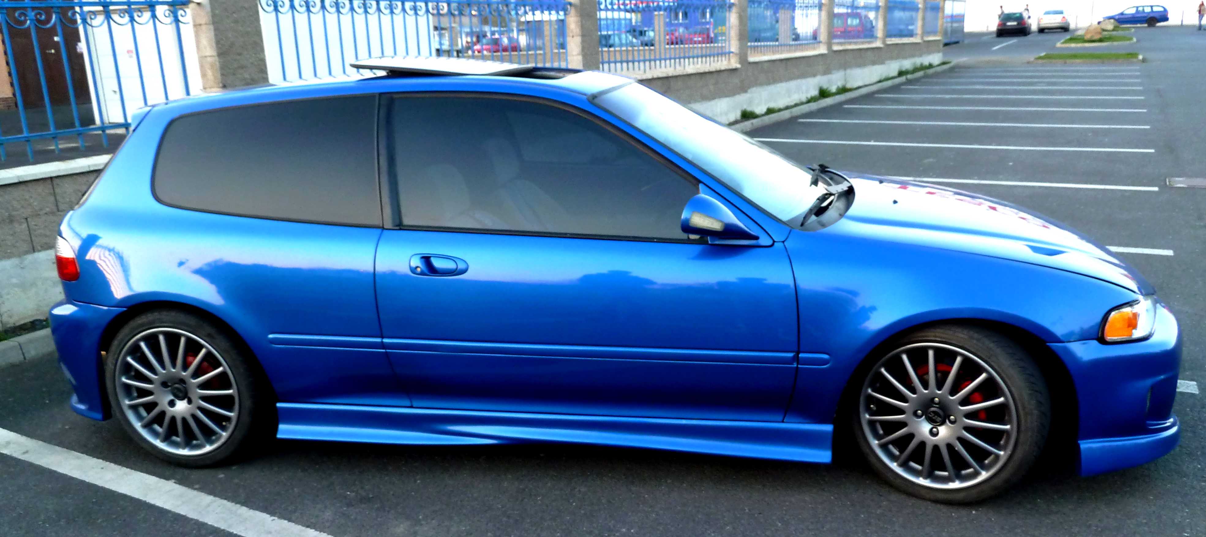 Prodám tuto krasavici, HONDA CIVIC 1.5 16ventil, sportovní podvozek, 17´alu kola,gumy 95%, přední a zadní čirá optika, zamračená kapota a páté dveře, nové žárovky, sportovní sání, sportovní volant, stroboskopy, rezonátor, laděný výfuk, šíbr v el., modrý interiér, pásy SPARCO, modré vnitří podsvícení pod volantem, podsvícená palubní deska v modré barvě, podsvícení podvozku 7 barvami. Prahy, spoilery - laminát. Zrcátka M3 s blinkrem, folie s atestem a mnoho dalšího. Technícká do 2012, najeto 120 000 Garážováno, ježděno jen sezonu. Nový celolak, auto je po GO.