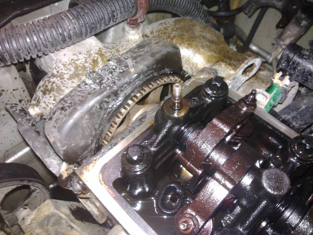 Z lehkého přehřívání se totiž stalo přehřívání značné, pak velmi značné a pak už se peklo všechno co se dalo. Prasklo těsnění pod hlavou, hlava se zkroutila, olej se přepaloval tak moc že nakonec v motoru nezůstal vůbec žádný. Úplně suchá měrka. No nic, ale dojet se musí ne? Tak startujem a fičíme asi ještě 30km z ostravskéo dálnice do suché do servisu Velmi šťastný