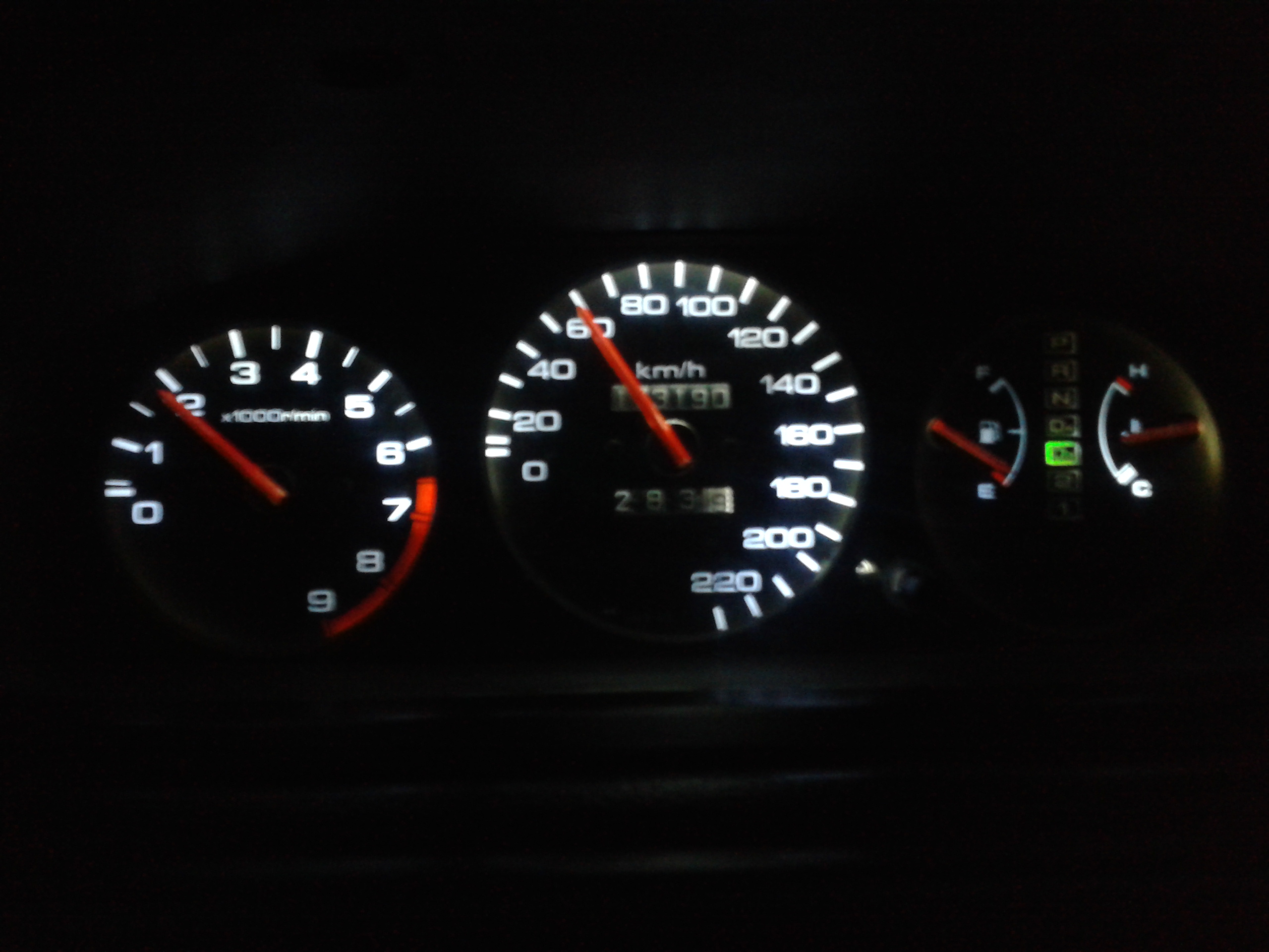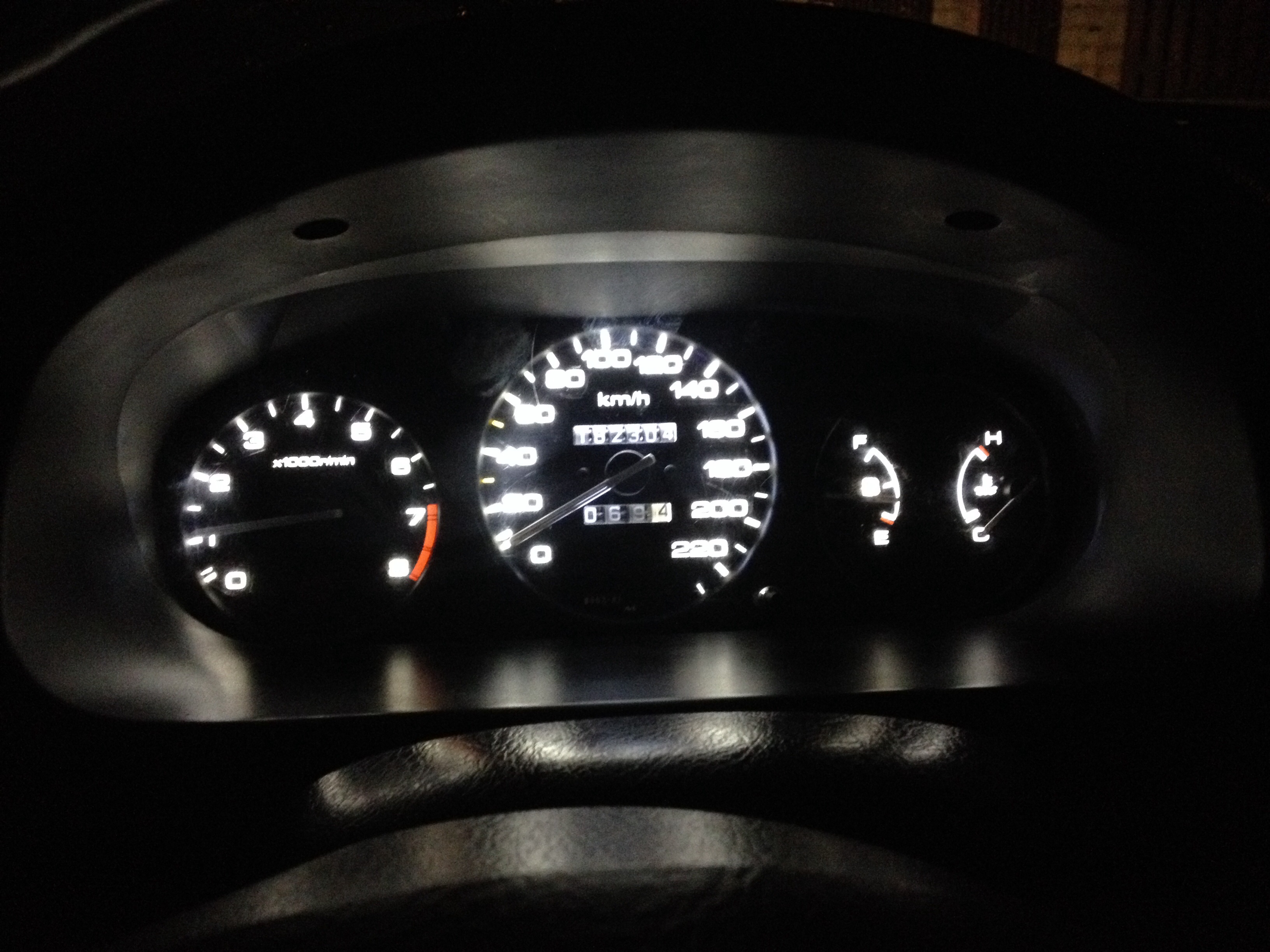 na diody se vyprdni. dej tam ty LEDpásky. Je to míň práce a je to na věky. A na ručičky až je budeš natírat tak opatrně , moc s nima nehejbej, s teplotou a fuelem radši vůbec. A ty budíky moc nepřitahuj, je to jen lehce dotažený a když to přitáhneš fest, tak je strhneš , jako já když jsem to dělal prvně.