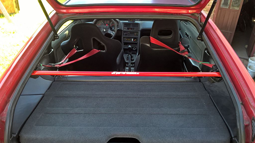 Pokud se v autě normálně používají zadní sedačky, tak bych rozpěru mezi C sloupky moc nedoporučoval, protože prochází prakticky hned za hlavama pasažérů a to je dost nebezpečný. Navíc jsou úchytný body poměrně dost vysoko u střechy, takže její přínos bude o dost menší než u CRX, nebo C4G.
