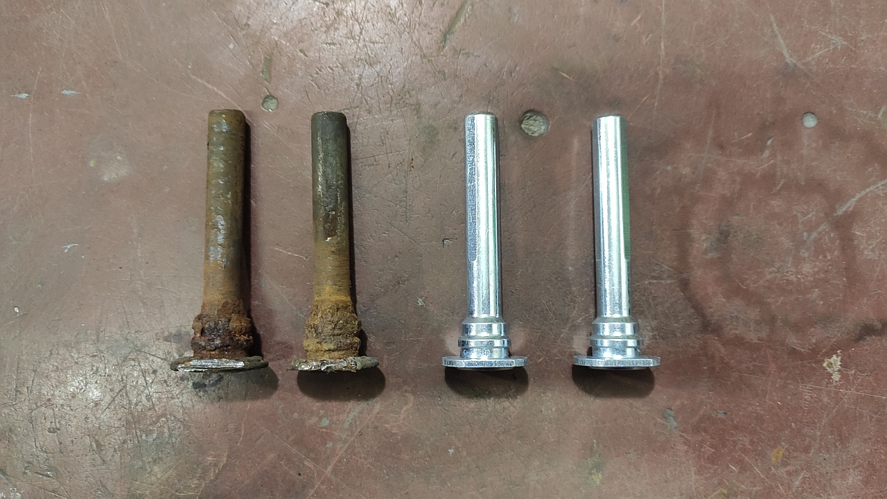 Taky jsem rozebral a vyčistil všechny brzdy + udělal rychlo repas předních třmenů, u kterých byly zarezly čepy unašečů a trochu hůř se hýbal jeden pístek.