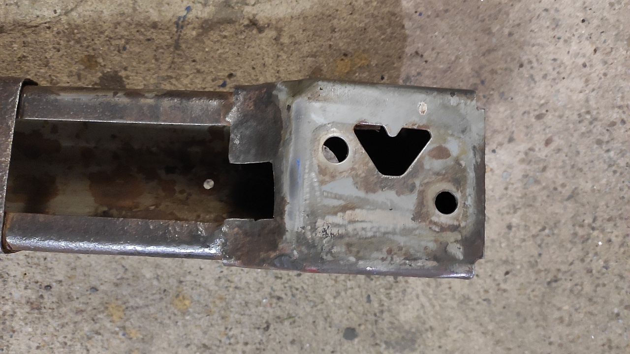 Výztuhu zadního nárazníku jsem musel na pár místech vyvařit, protože byla vyrezlá, ale celkem se mi jí povedlo dát dohromady + jsem jí trochu odlehčil (-0,7 kg) odstranění profilovaných návarků z horní strany.
