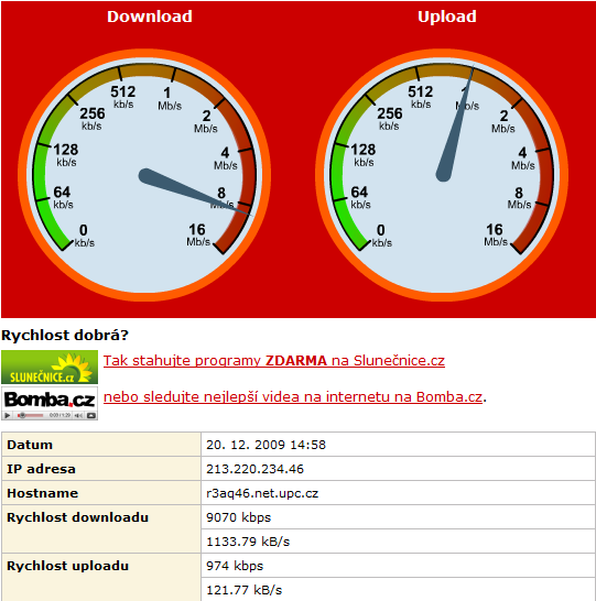 tak na to, že bych měl mít podle smlouvy 8MB dolů a 1MB nahoru, tak nic moc ...