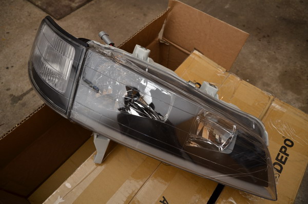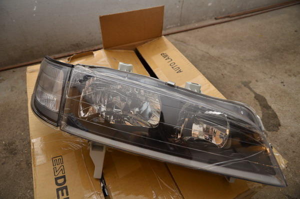"94-97 Accord JDM SIR BLACK Head Lights PAIR DEPO 95 with Corner Side Lamps"