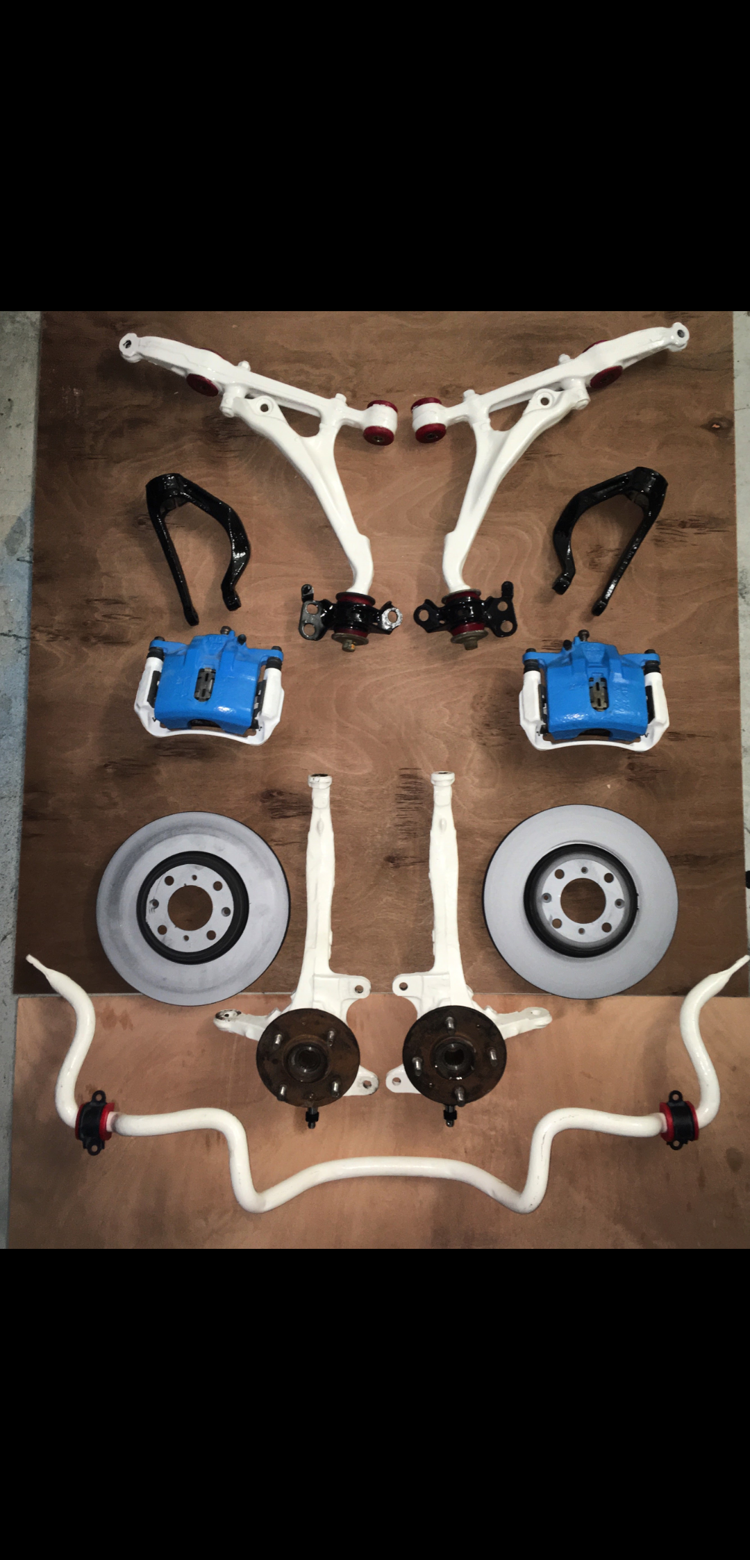 Podvozek výškově stavitelnej AP sportfahrwerke, Přední i zadní nápravy v polyuretanovém uložení a zrepasované. Vepředu stabik 26mm.