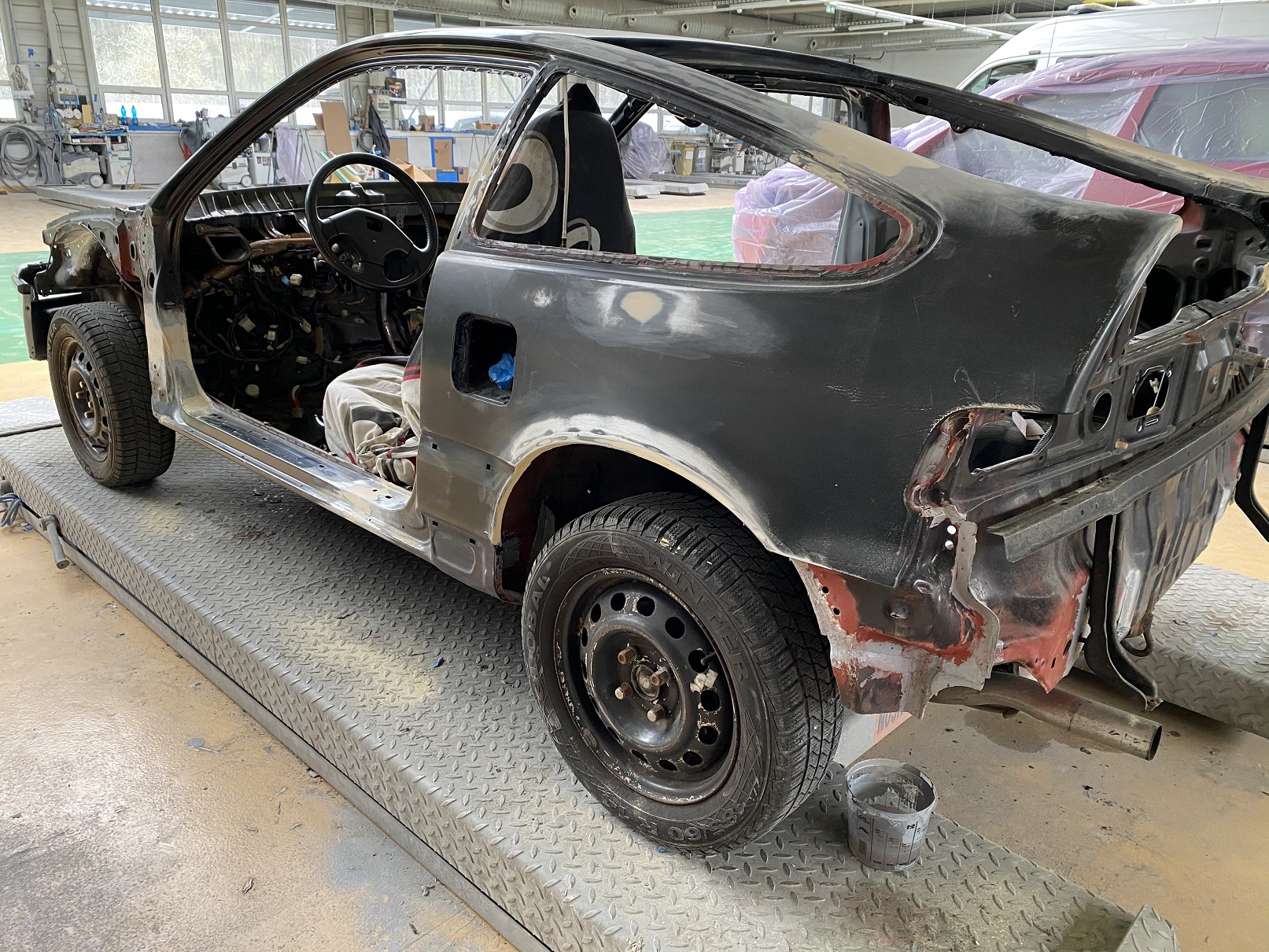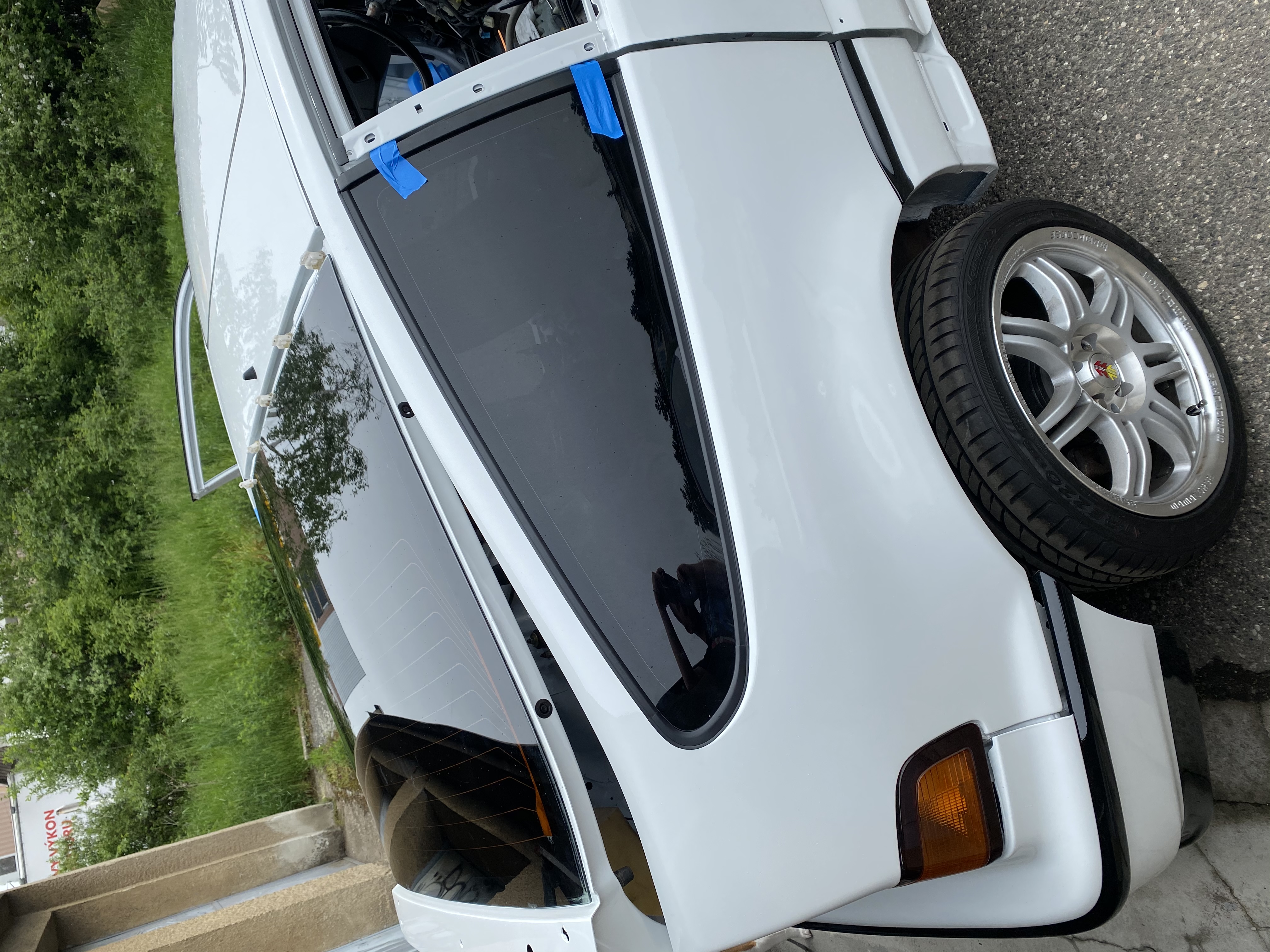 aktuální fotky z práce na lakovně-už je v plniči Je to tam. jde jim to super od ruky a v pátek by teoreticky mohlo už do boxu je to dobrý dnes když byla chvilka přeleštil jsem zadní světla to mi hlava nebere