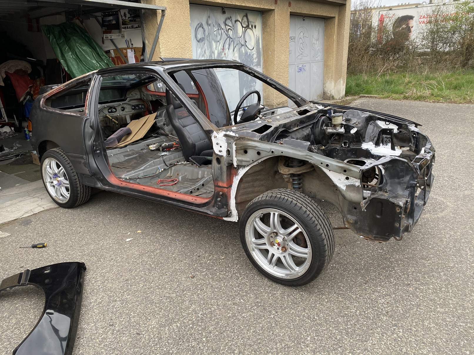 Dloho jsem přemýšlel jak to udělat s mou ED9 která byla přestavěná defakto na plnohodnotnou EE ale jediné co chybělo bylo VIN - takže jsem přemýšlel jak to udělat a zachovat stříbrnou bylo pno možností / sehnat holou kastli a přeházet ,ale bylo mi líto co potom ze stříbrnou vlastně ji na 90% vzít život ,pak bylo pál návrhů převařit Vin ale i když bych to nikomu neřekl já bych otom věděl *oprava* takže jsem to vždy odpískal .Nicméně jednoho dne jsem tak klasicky brouzdal po foru a objevil prodej EE8 v započaté renovaci .Dlouho jsem nepřmýšlel a začal od Minora sondovat šla by jen kastle ? no nakonec jsem se do toho tak ponořil a vzal ho celé komplet pouze bez předního nárazníku ale ten jsem měl na víc *pohladit* Nakonec se tedy rozhodlo že stříbrná půjde s těžkým srdcem po 9 letech do světa jen se do ní dá seriová B16 z černé a předek se nahodí nazpátekED9 Tak to valím bulvy a černá se postaví od základu .