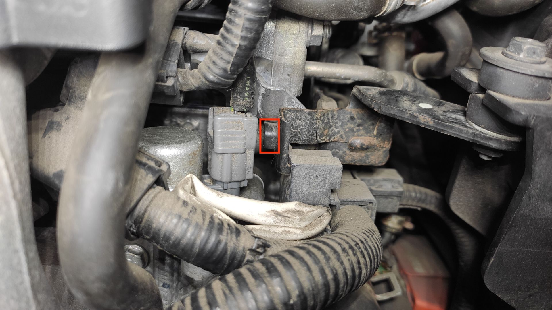 Nějakou dobu jsem řešil zvláštní skučivý zvuk za studena na volnoběh v oblasti nad VTEC solenoidem (při poslechu stetoskopem je zvuk nejhlasitější v místě vyznačeném na fotce), ale na příčinu jsem nepřišel. Na crzforum.com jsem našel pár témat zmiňujících stejný problém, ale opět bez řešení.